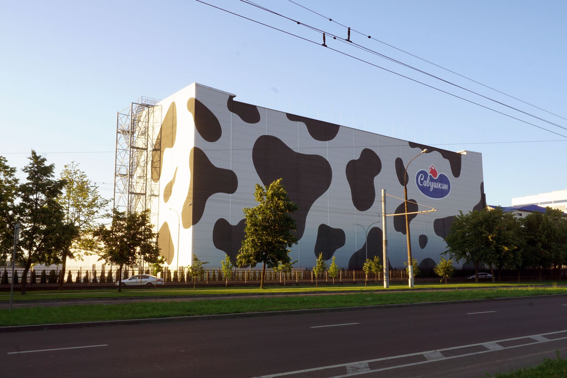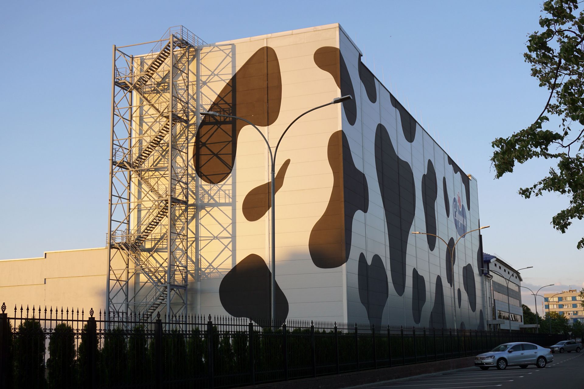 Чтобы уйти от однотипности и разнообразить и без того серый промышленный район Бреста, управление маркетинга и рекламы «савушки» со своим партнером – компанией «Вондел» разработала идею оформления, а наша команда за 19 дней упорной работы расписала 3600 квадратных метров фасада автоматизированного логистического комплекса.